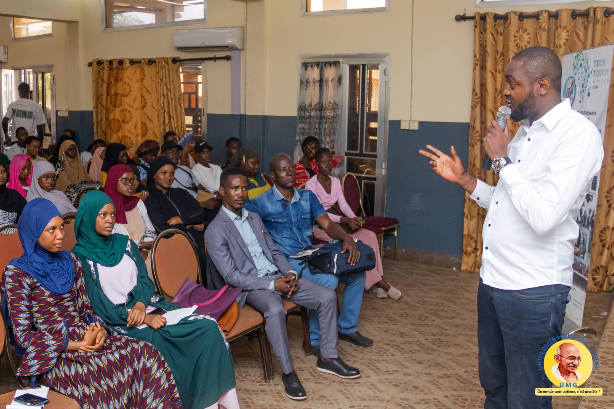 Cette galerie met en lumière les moments clés des événements, organisé par Tech Touch Africa dans le cadre de son initiative pour favoriser l'employabilité des jeunes et la collaboration entre les entreprises et les étudiants. Découvrez les temps forts de cette journée dédiée à la plateforme Lodik Gestion, son rôle dans l'écosystème numérique guinéen, ainsi que les échanges fructueux entre les participants, partenaires, et experts en technologie.